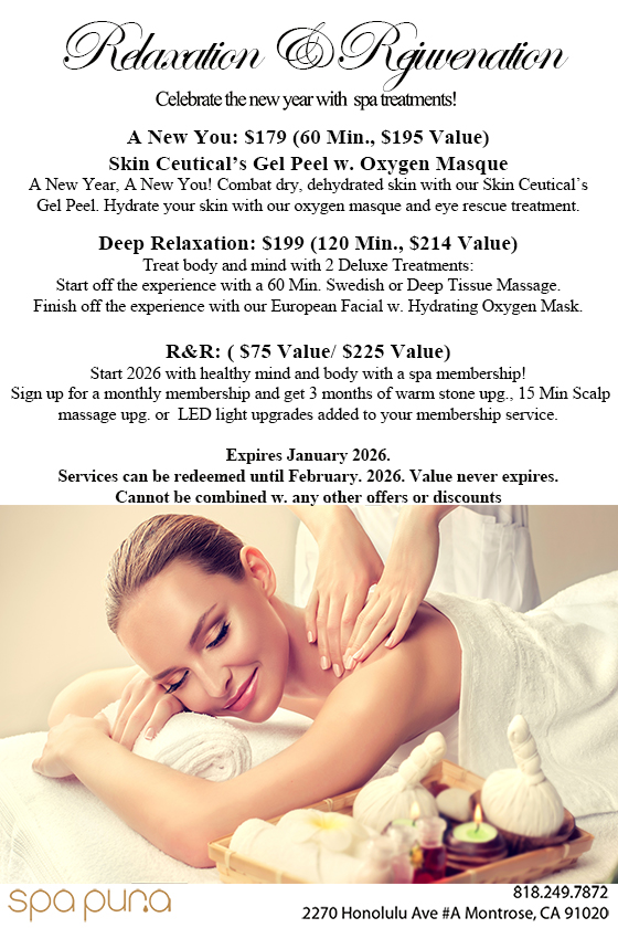 When stress, soreness and tension take root in your body, it’s time to find relief. Spa Pura offers massage services to help you get back in tune with your body in Montrose, and also welcomes clients from Glendale, CA and nearby areas.