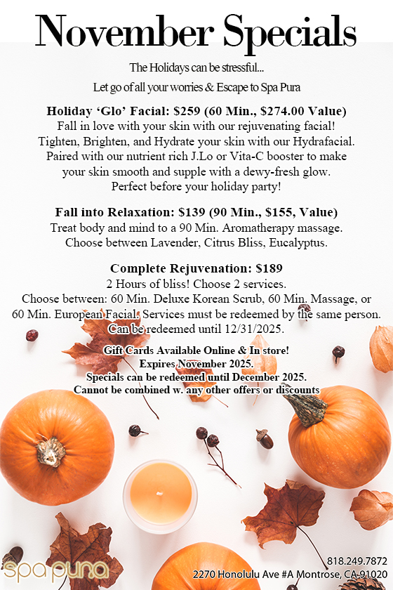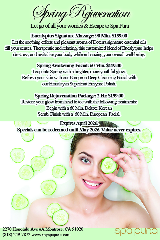 Spa Pura is a luxury spa in Montrose. Guests from both Montrose and Glendale, CA, visit our 7,000-square-foot relaxation oasis whenever they seek a tranquil escape. In our spa, you can experience a serene environment that will relieve stress and rejuvenate your body. Despite the size of our space, we’ve created an intimate, welcoming atmosphere where you will feel right at home.